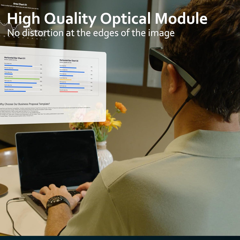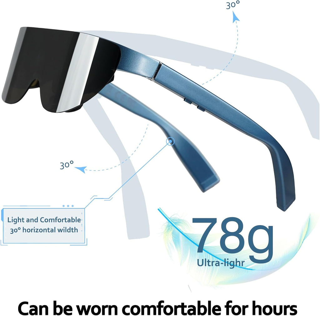 - 【EXTREMELY COMFORTABLE HIGHEST EYE-CARE CERTIFIED-Both Waring and Viewing 】 The only 79g weight smart glasses with zero-pressure nose pads and ultra soft temples give your a enjoyment of all day wearing and ensuring maximum comfort.Up to 1800 nits high brightness ensure your feeling of no tired during longtime working.