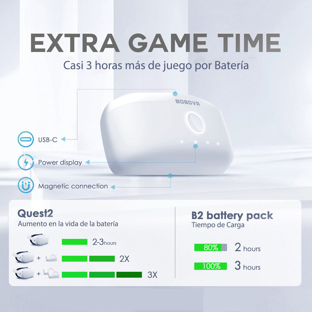 The B2 is a replaceable battery designed specifically for the head strap ( BOBOVR M2 Pro ), this battery can be changed by magnetic attraction to continue using the device without having to turn it off or lose usage time.