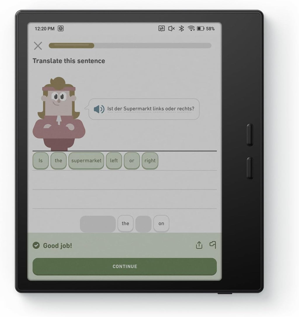 Control ergonómico. Utiliza los **botones laterales** dedicados para pasar la página de forma instintiva, sin necesidad de tocar la pantalla.