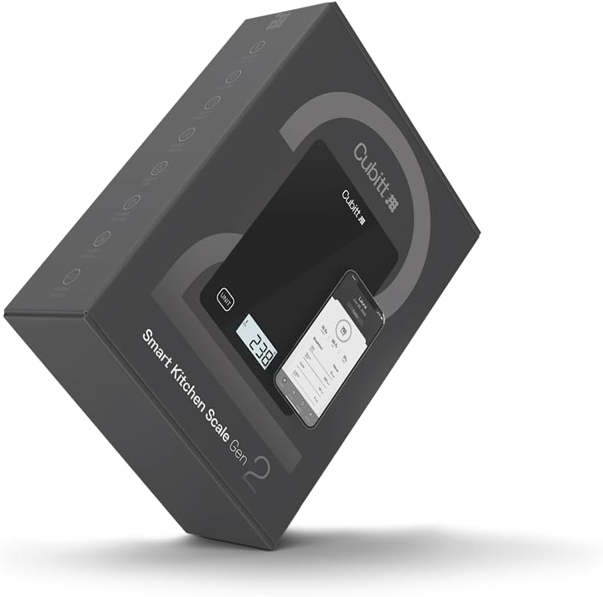La Cubitt Smart Kitchen Scale se conecta vía Bluetooth a la App Foodiet. Olvídate de los cálculos manuales; sincroniza tus datos al instante y lleva un registro detallado de calorías, proteínas y grasas gracias a la extensa base de datos de la USDA. Compatible con Apple Health.