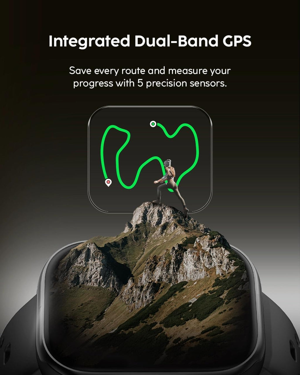 Equipado con 5 sensores de precisión y un sensor de movimiento de 6 ejes para capturar cada detalle de tu esfuerzo.
