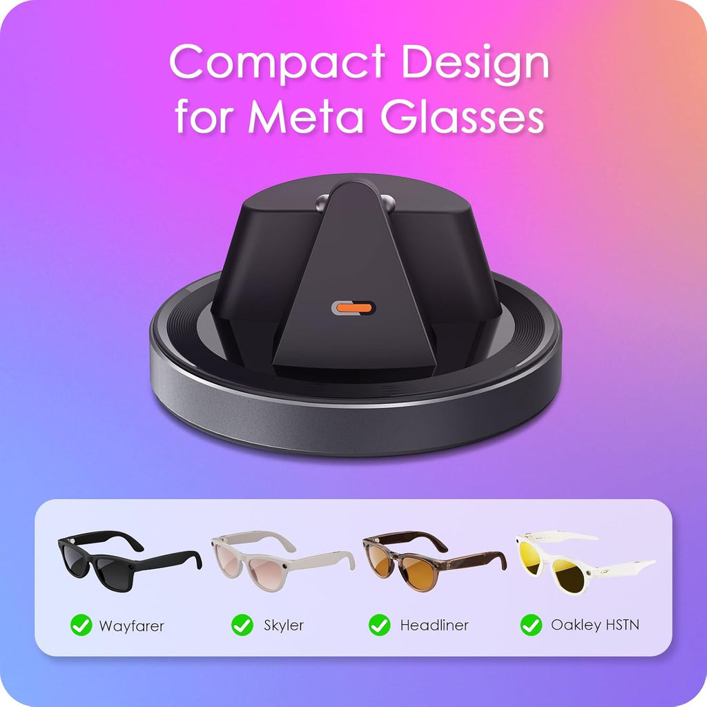 • Compact Fit for Meta Eyewear: Designed for Wayfarer, Skyler, Headliner, and Oakley Meta HSTN models, this round charging station offers a comfortable, reliable fit in a compact size, ideal for small spaces, nightstands, or car interiors.