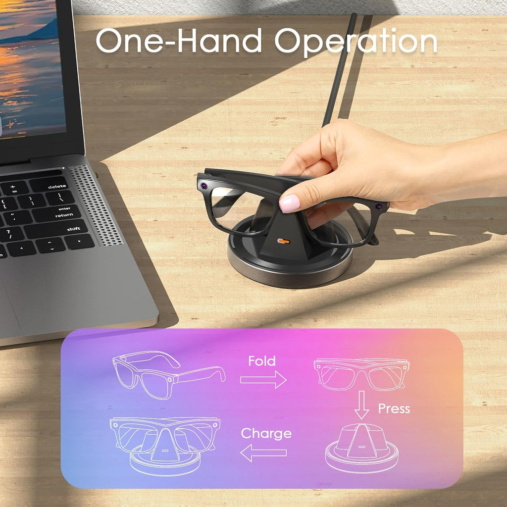 • Portable and travel-ready: Sleek, lightweight, and easy to store. Whether on your nightstand, desk, or in the office, this charging dock keeps your Meta glasses charged and ready, clutter-free and hassle-free.