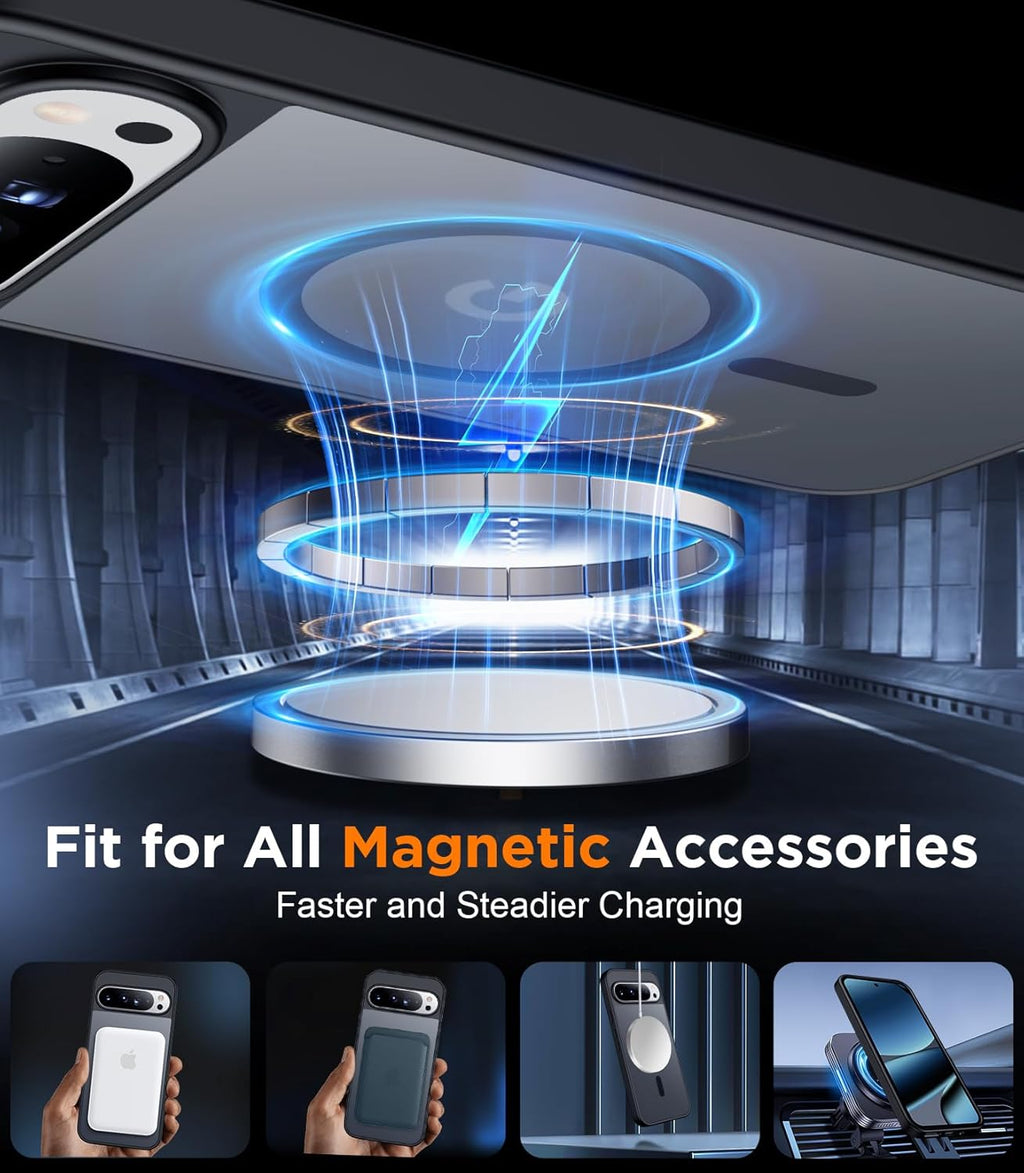 • [Diseño magnético] El anillo magnético integrado se alinea perfectamente y se bloquea en su lugar, lo que hace que la carga inalámbrica sea más rápida y sencilla que nunca. Esta funda para Google Pixel 10/Pixel 10 Pro no se caerá ni siquiera al girarla gracias a su gran capacidad de absorción.
