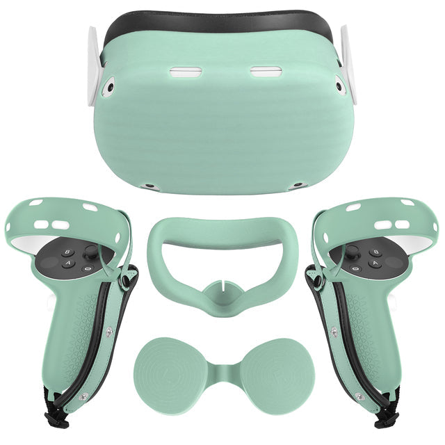 This is a complete set of Oculus Quest 2 accessories, designed to provide protection, comfort, and functionality for your virtual reality devices. Each product in this set is made with high-quality materials, such as soft and durable silicone, ensuring effective protection against damage and wear.
