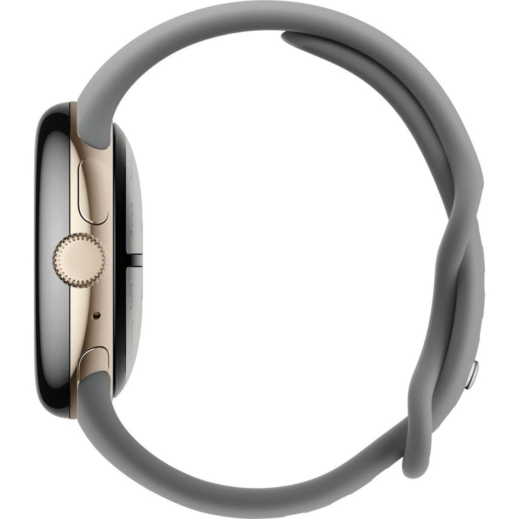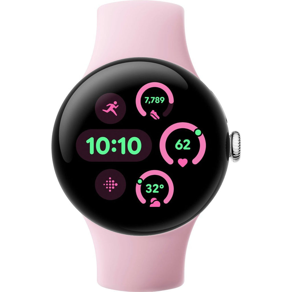 It's equipped with a 307 mAh battery in the 41 mm version and a 420 mAh battery in the 45 mm version. With up to 24 hours of battery life, the smaller model offers a full charge in just 60 minutes, while the 45 mm model charges in 80 minutes. Additionally, both models have a battery life of up to 36 hours in battery saving mode, according to Google.