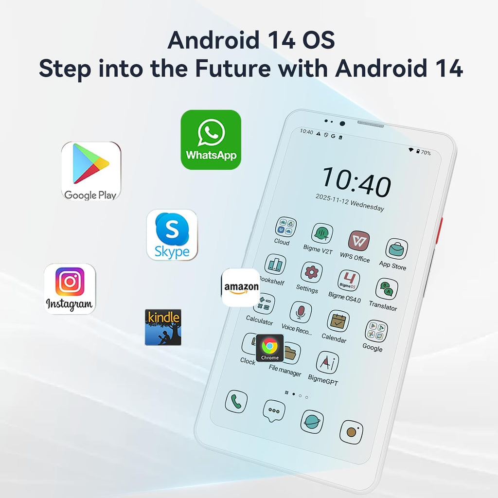 Android 14 OS: Sistema operativo moderno y seguro. Accede a una amplia gama de aplicaciones de productividad, lectura y redes sociales con actualizaciones de seguridad regulares.