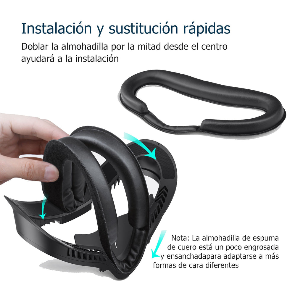 First, the set includes two face pads. These pads are made of premium PU leather, a soft and breathable material that feels comfortable against the skin. They're also designed to perfectly fit the shape of your face, ensuring a comfortable and secure fit during long gaming sessions. These face pads allow you to enjoy a VR experience without discomfort or skin irritation.