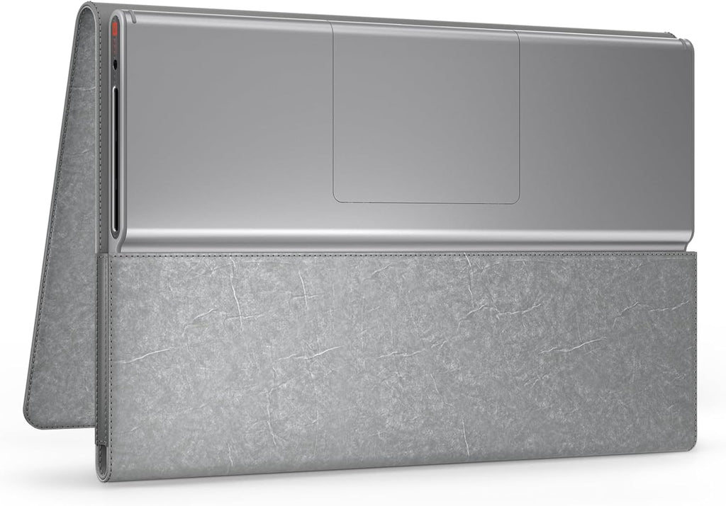 La Lenovo Tab Plus combina funcionalidad y estilo. Incluye una **funda Folio Case** para protección total, elaborada con materiales reciclados como DuPont Tyvek y cuero PU, manteniéndola protegida y elegante.