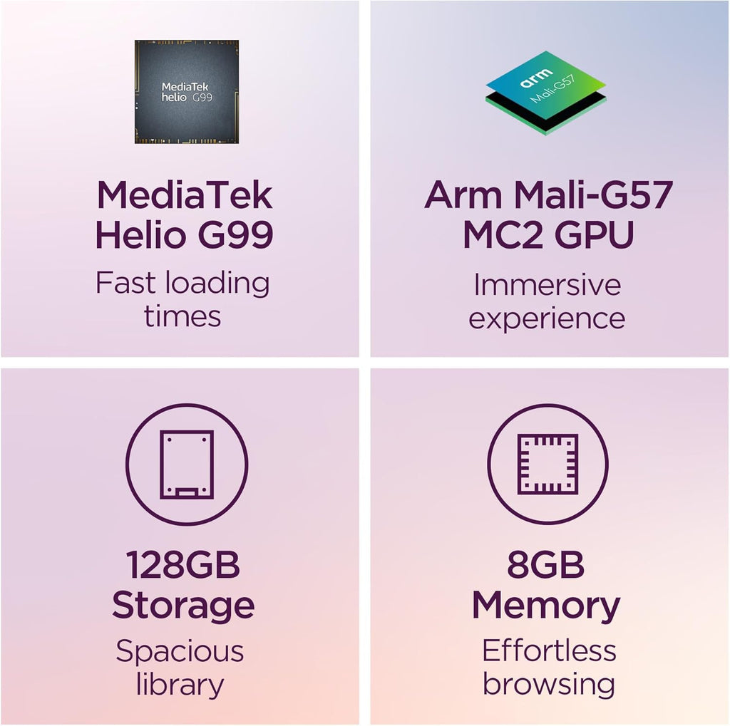 El potente procesador **MediaTek Helio G99** y la fluida tasa de refresco de 90Hz garantizan una experiencia de juego elevada y tiempos de carga rápidos. ¡Consigue tu nuevo récord personal!