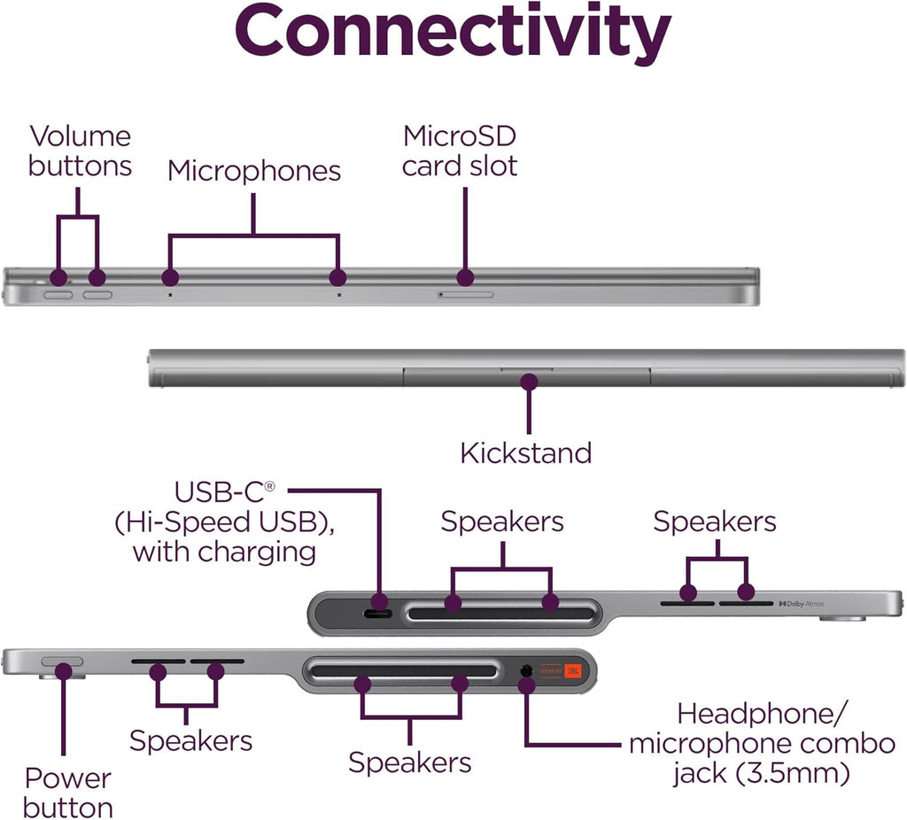 La Lenovo Tab Plus es más que una tablet; es una experiencia audiovisual de vanguardia que te ofrece sonido de calidad de cine y una versatilidad inigualable.