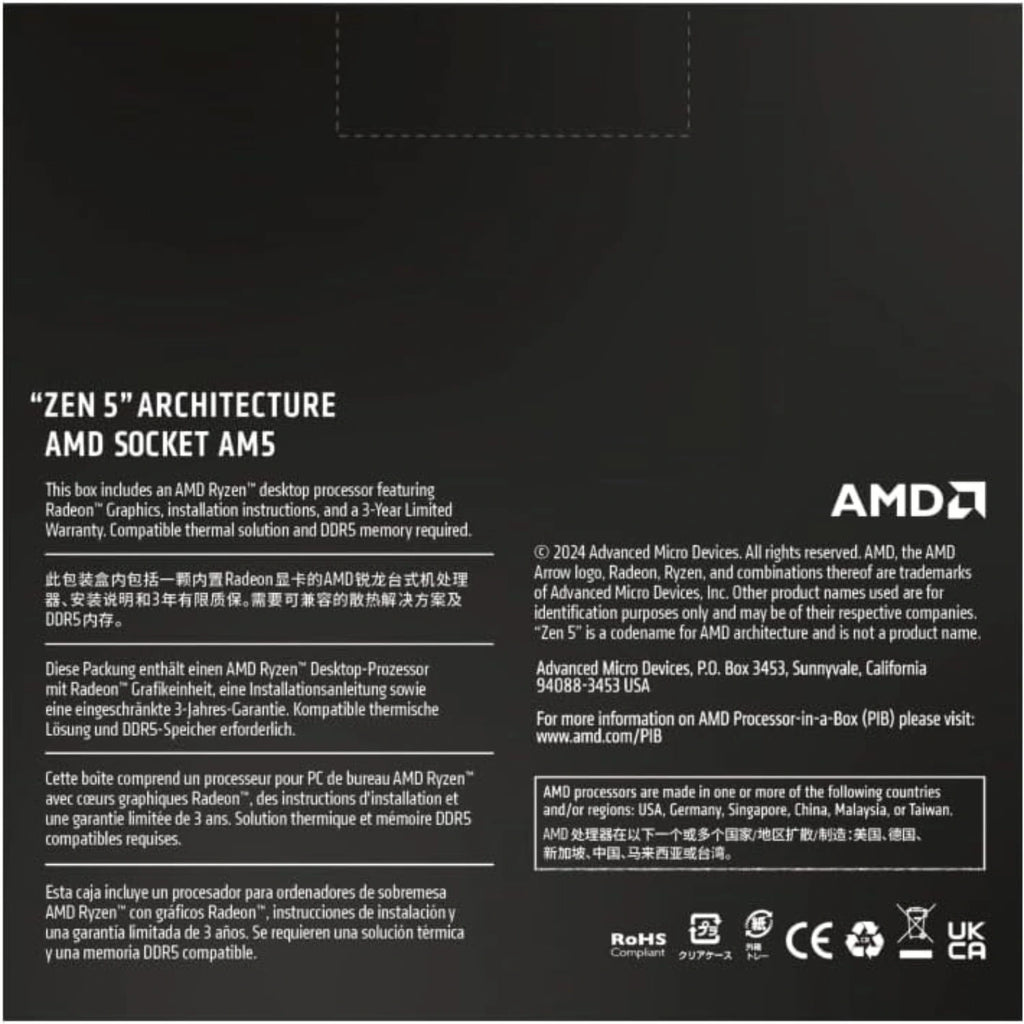 Powered by the efficient Zen 5 architecture, this processor delivers a significant increase in performance per watt, resulting in more power with lower energy consumption. Support for PCIe 5.0 ensures ultra-fast transfer speeds, ideal for taking full advantage of next-generation NVMe SSDs and high-performance graphics cards.