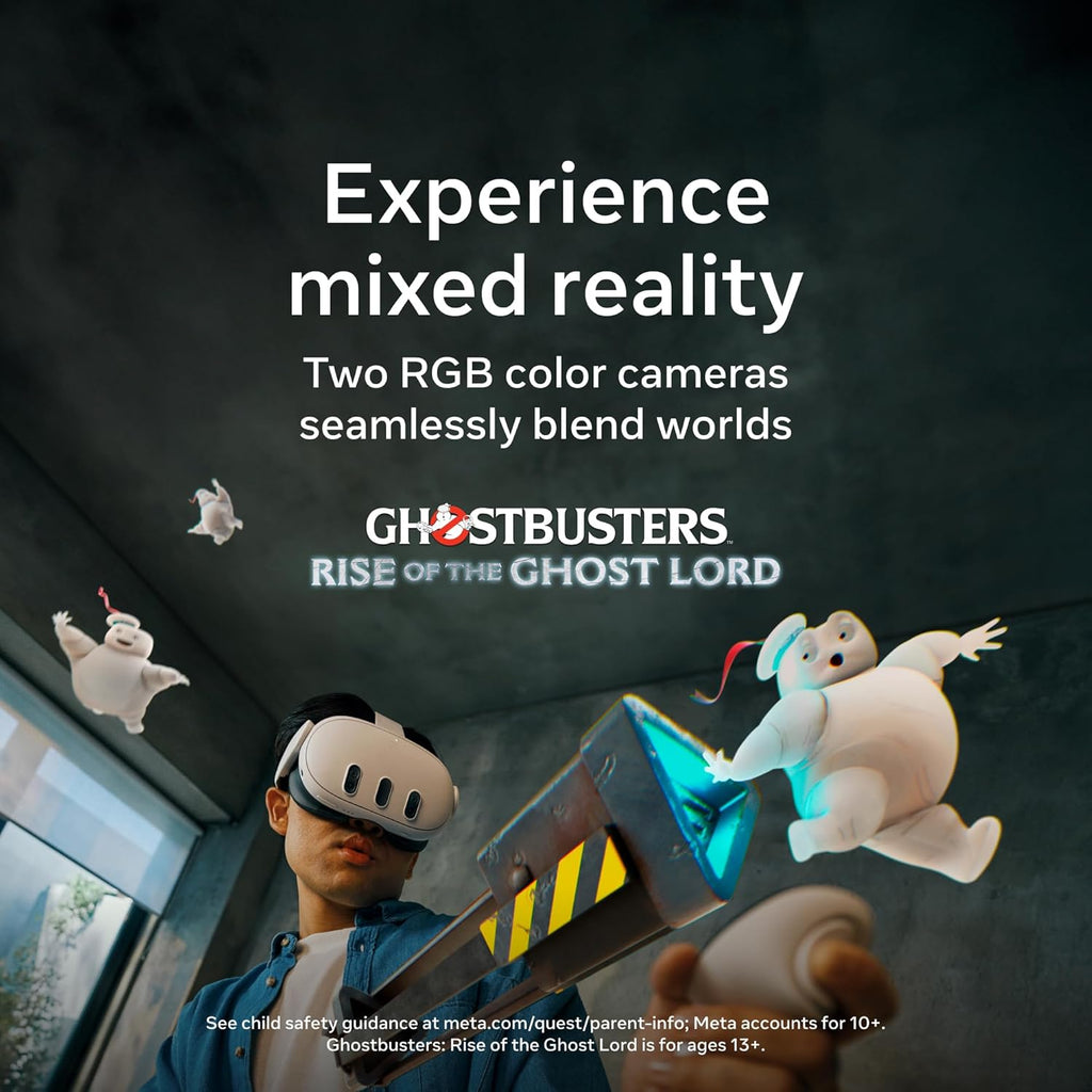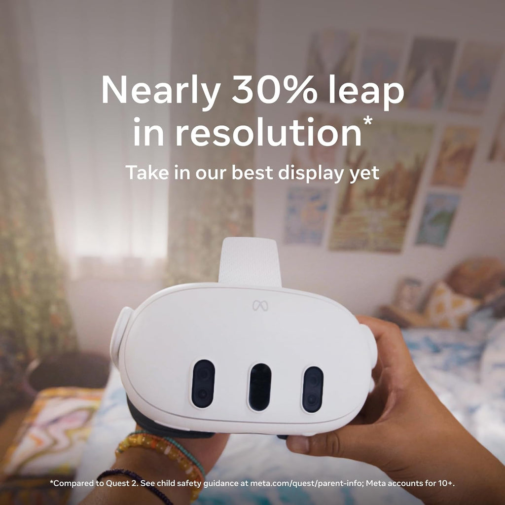 Enjoy the ultimate mixed reality experience. With Meta Quest 3, you can watch series on vibrant, giant screens that you can adjust to the perfect size, while seeing the world around you. Immerse yourself in total immersion, feeling like you're inside your favorite games, thanks to brilliant 4K resolution and rich spatial audio. With Infinite Display, enjoy the widest field of view of any Quest for the most immersive experiences yet. Its slim, wireless design gives you premium comfort to move freely through workouts, complex games, and dynamic environments. Experience the power and premium convenience of Meta Quest 3.