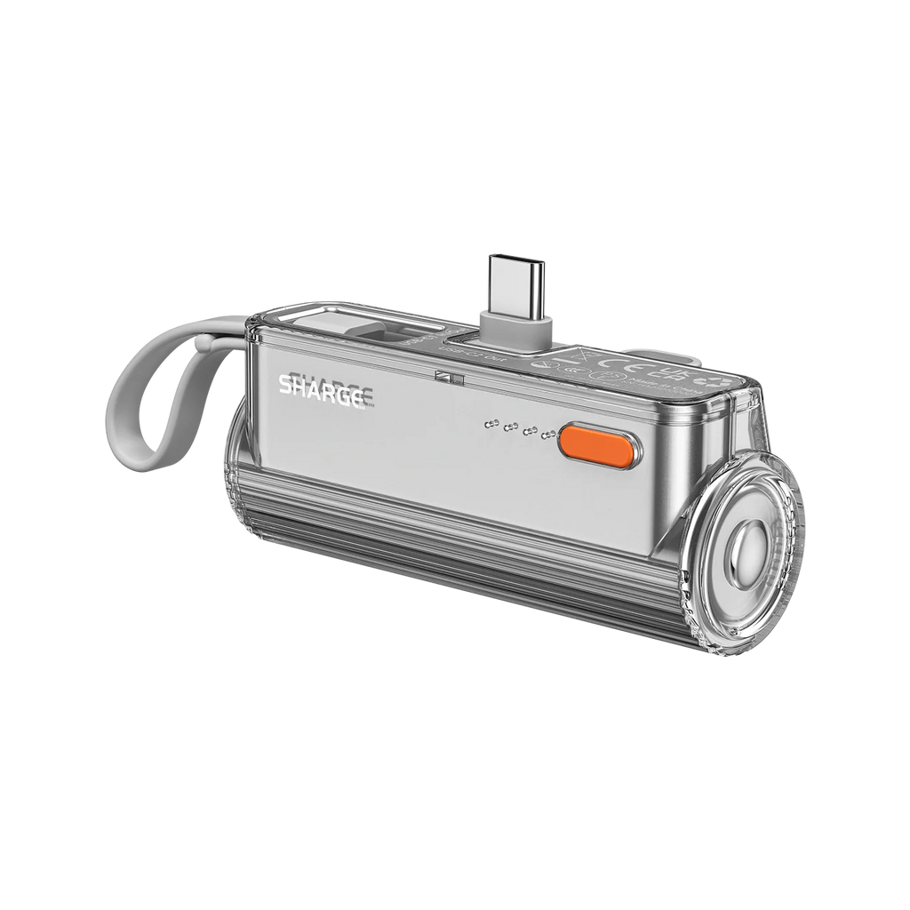 The Sharge Flow Mini 5000mAh Power Bank is a portable charging device designed to provide extra power to smartphones, tablets, and other devices that charge via USB.