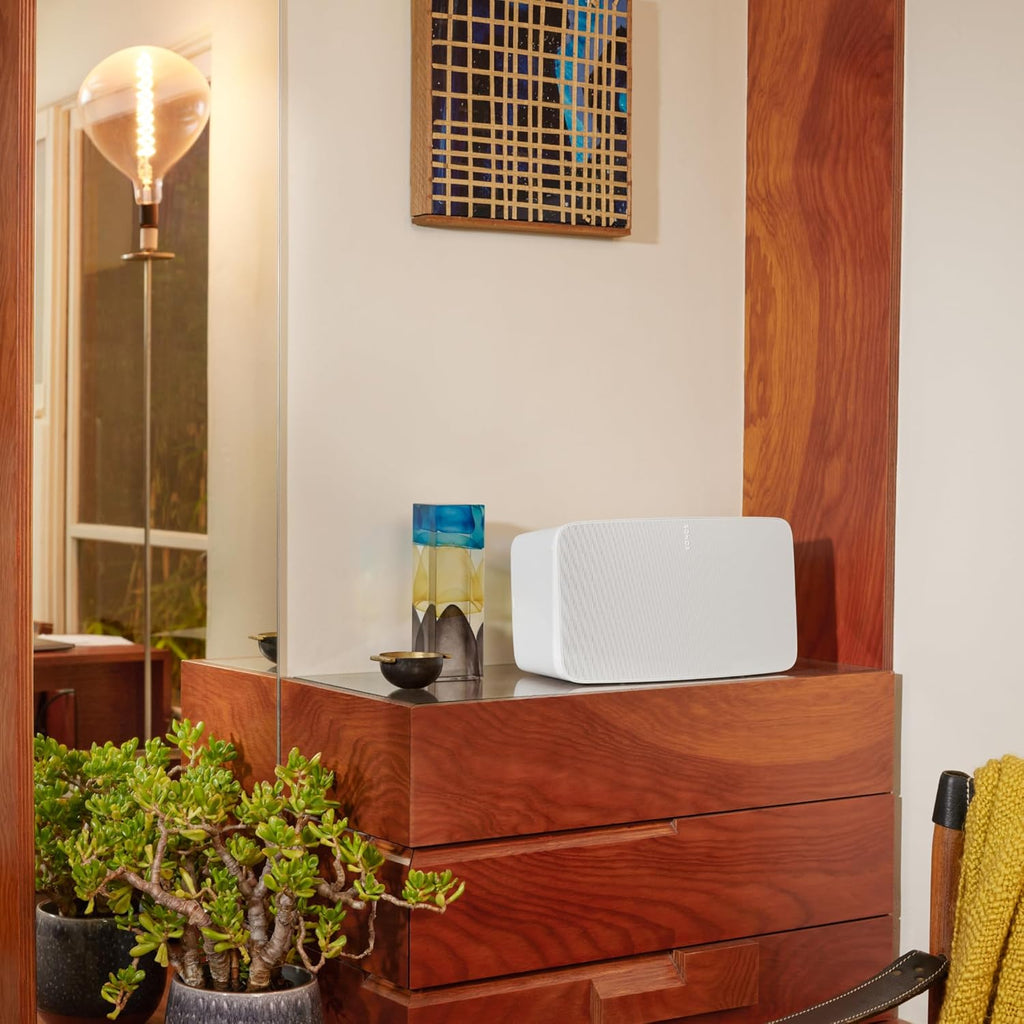 Gracias a la tecnología Trueplay™, el Five analiza la acústica única de tu habitación y optimiza el ecualizador automáticamente. El resultado es un sonido perfecto, adaptado exactamente al lugar donde decidas ponerlo.