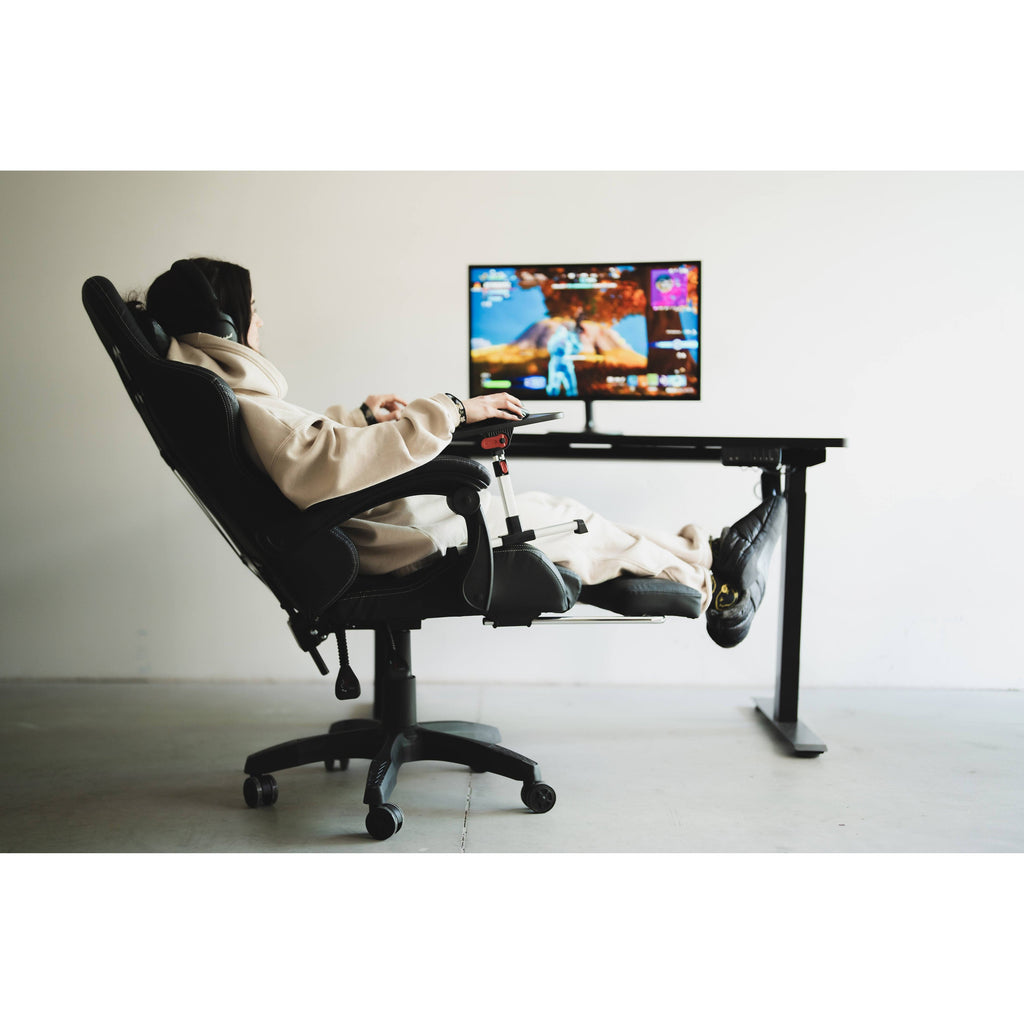 Take care of your health and well-being with the UpLift ergonomic desk! If you spend long periods of time sitting, you're likely to notice rounded shoulders, loss of elasticity in your spine, damage to your intervertebral disc, stiffness in your hip joint, and varicose veins in your legs and feet. With our height-adjustable desk, you can continue doing what you're doing by adjusting your posture. These changes in movement will relieve tension in your shoulders, back, and neck, aiding proper blood circulation throughout your body, providing a level of concentration and productivity.